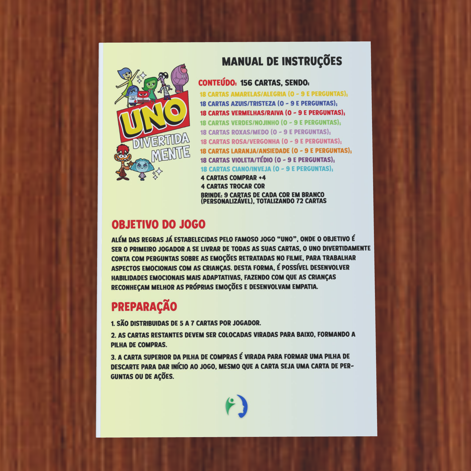 O Uno Divertidamente é um jogo de cartas inspirado no famoso UNO (Mattel), criado para trabalhar as emoções de maneira lúdica, dinâmica e acessível. Perfeito para ser usado em salas de aula, consultórios ou em família, promove momentos de diversão enquanto desenvolve a inteligência emocional das crianças.